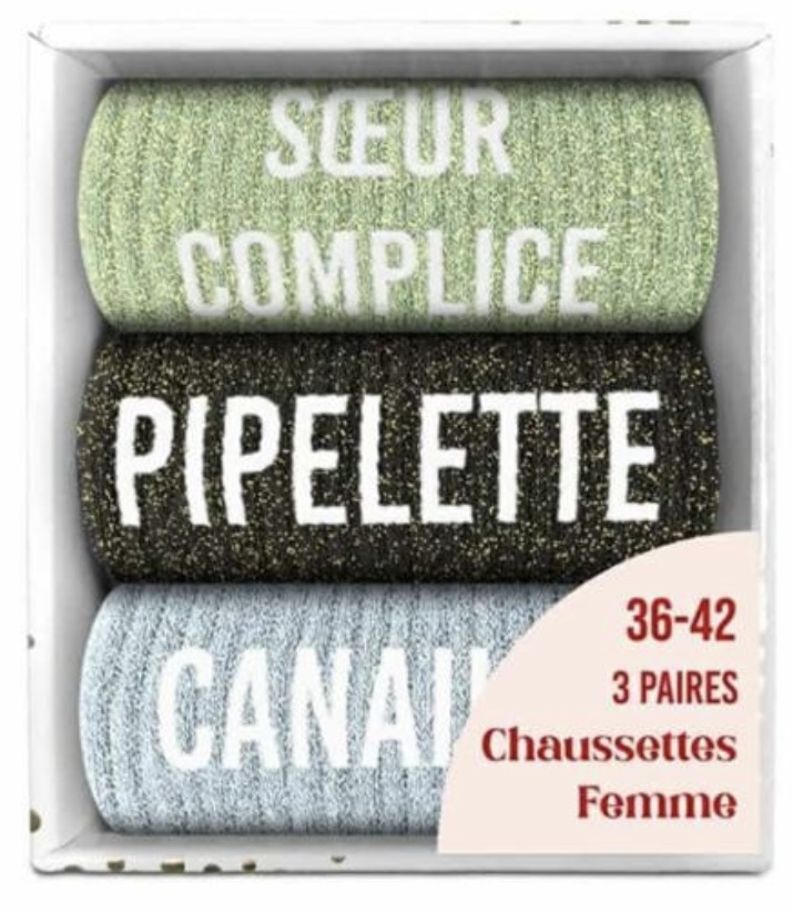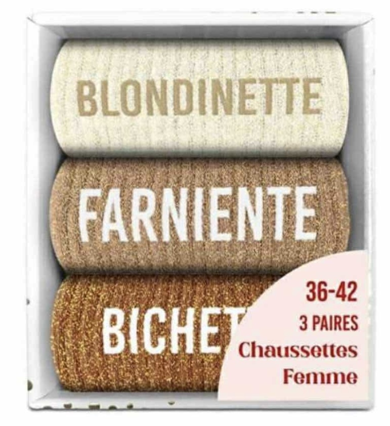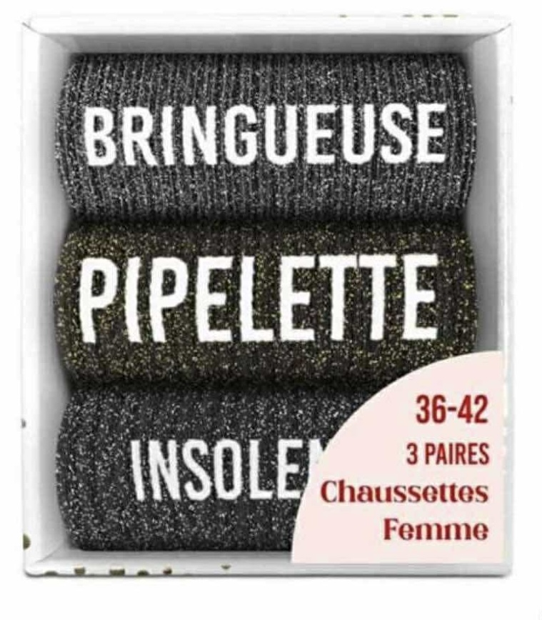 • Boxes de 3 chaussettes à paillettes avec message pour Elle et pour Lui ! Une super idée de cadeau à petit prix pour les fêtes