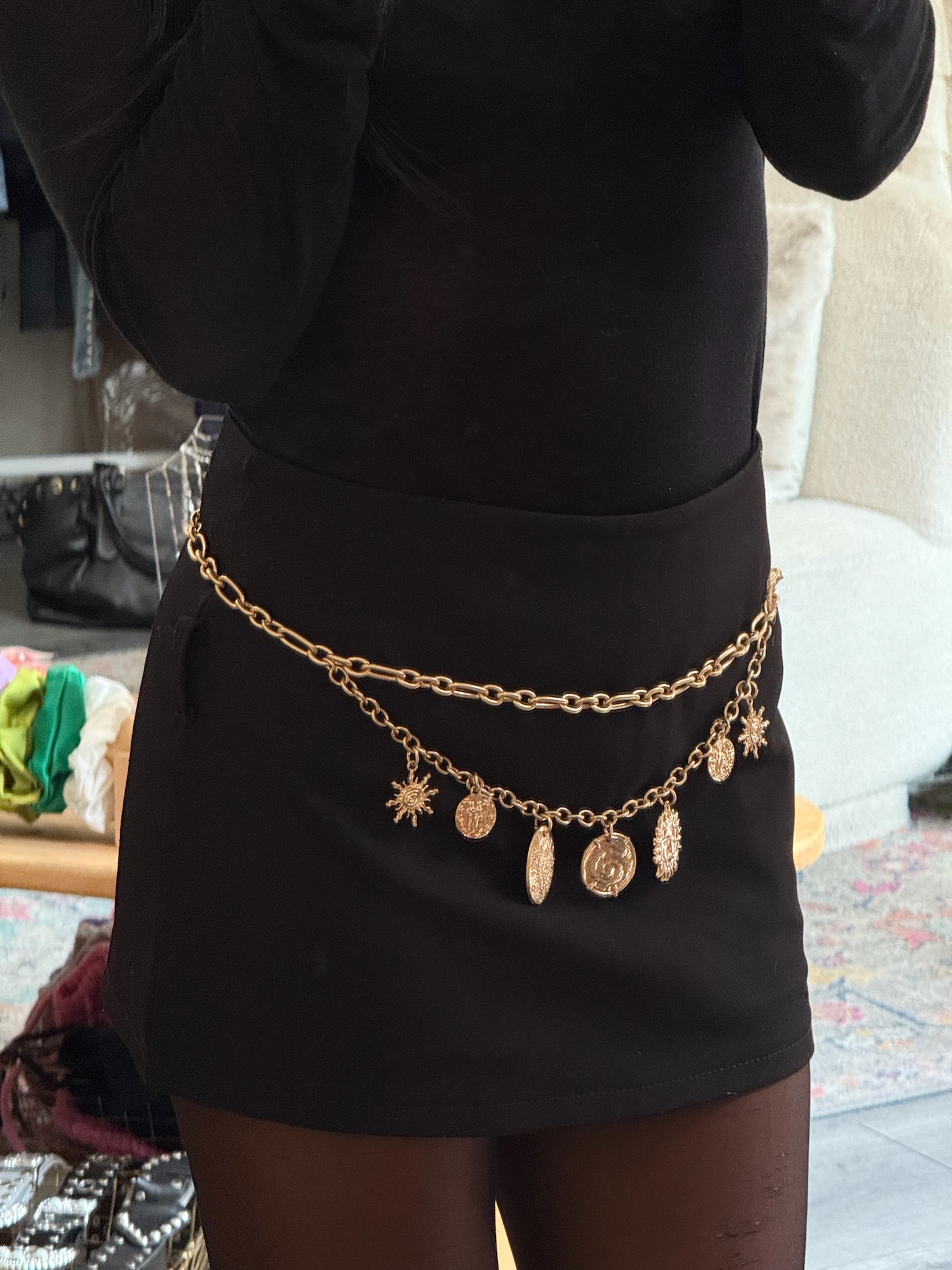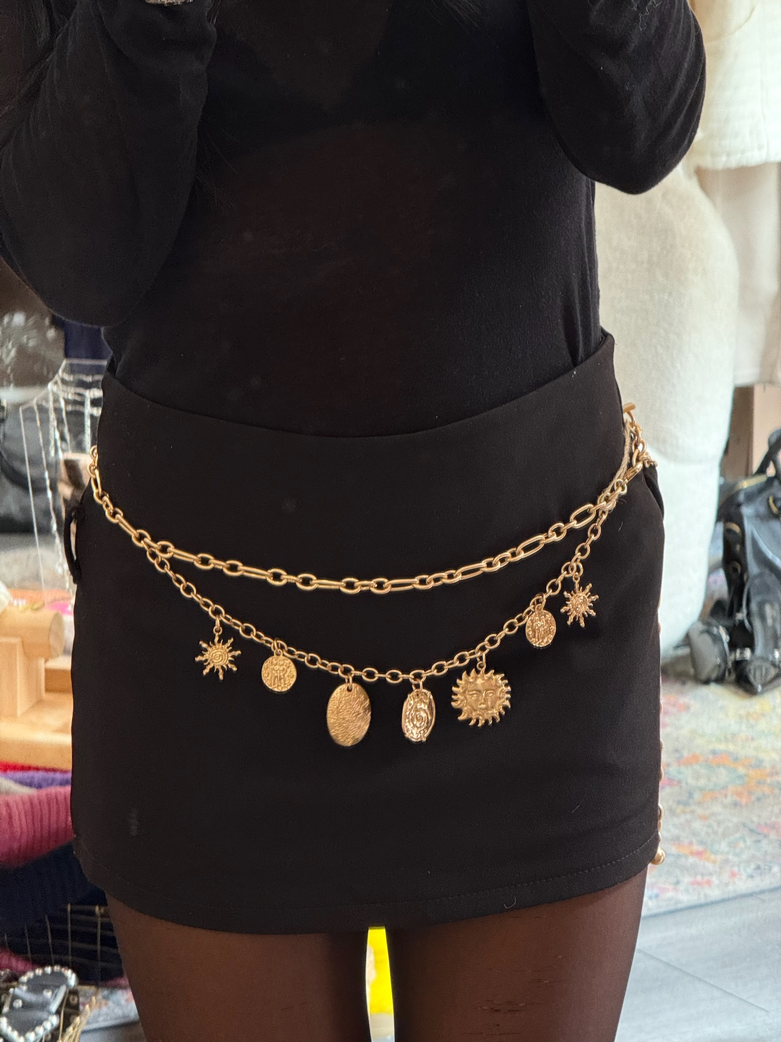 Collier double chaîne dorée en acier inoxydable, orné de breloques pour une touche lumineuse et estivale. Léger et ajustable, il apporte facilement une note bohème et solaire à vos tenues. Parfait pour la saison printemps/été et un look aux vibes Ibiza.
