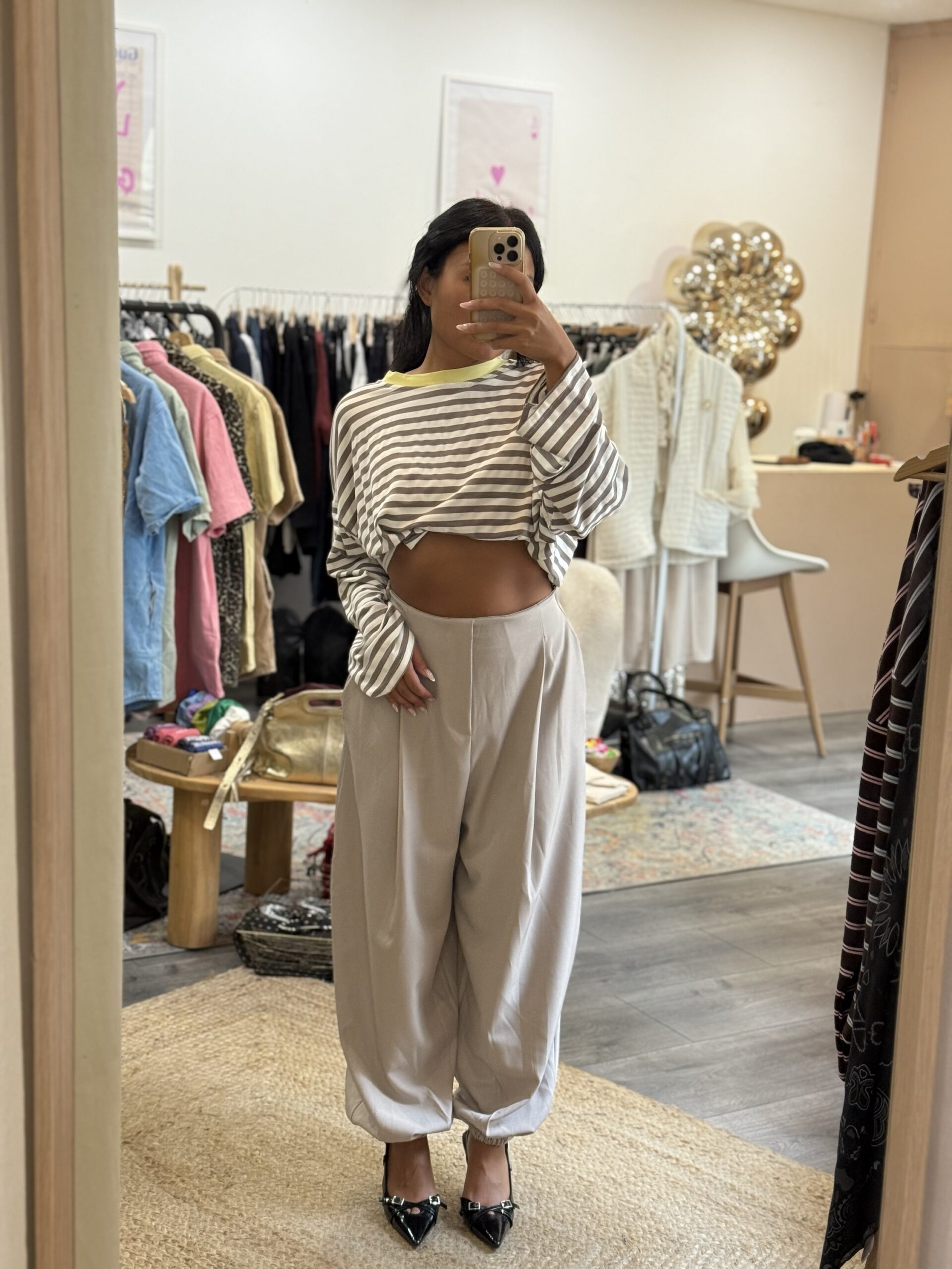 Pantalon style tailleur à la coupe élégante, resserré aux chevilles pour une silhouette moderne et structurée. Confortable et facile à porter, il apporte une touche chic à toutes vos tenues, du bureau aux sorties.