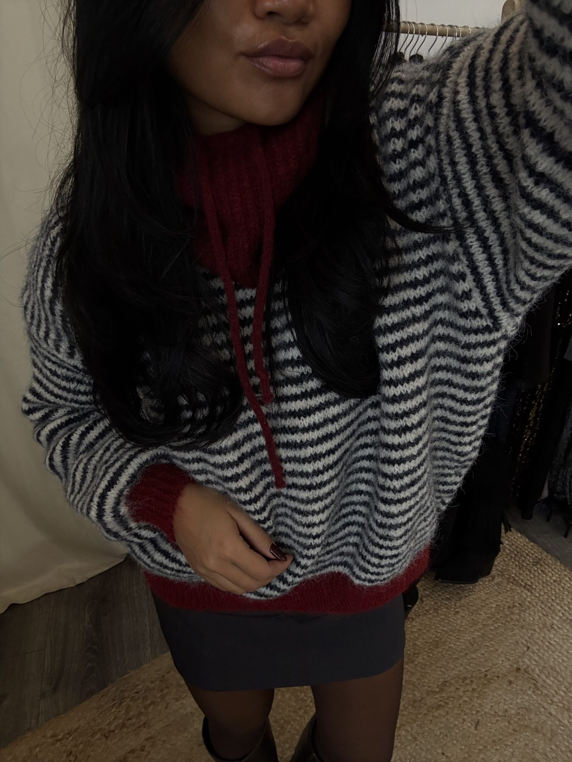 • Composition : 59% polyester recyclé, 21% nylon, 8% laine, 11% polyester et 1% spandex