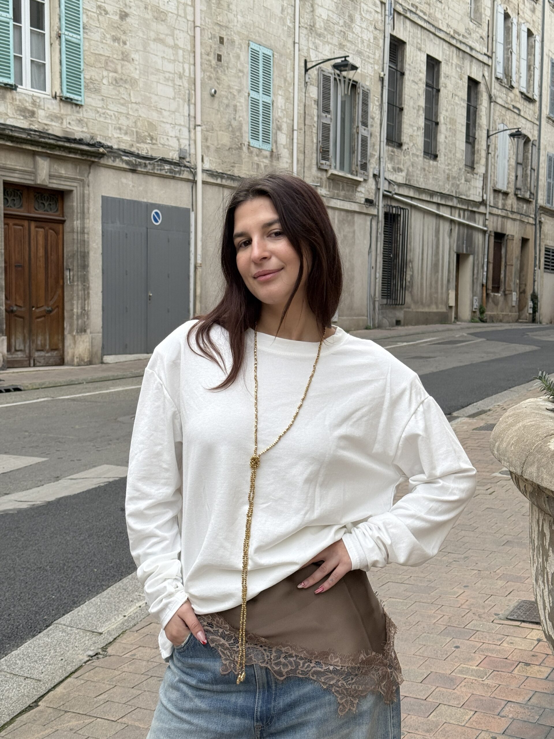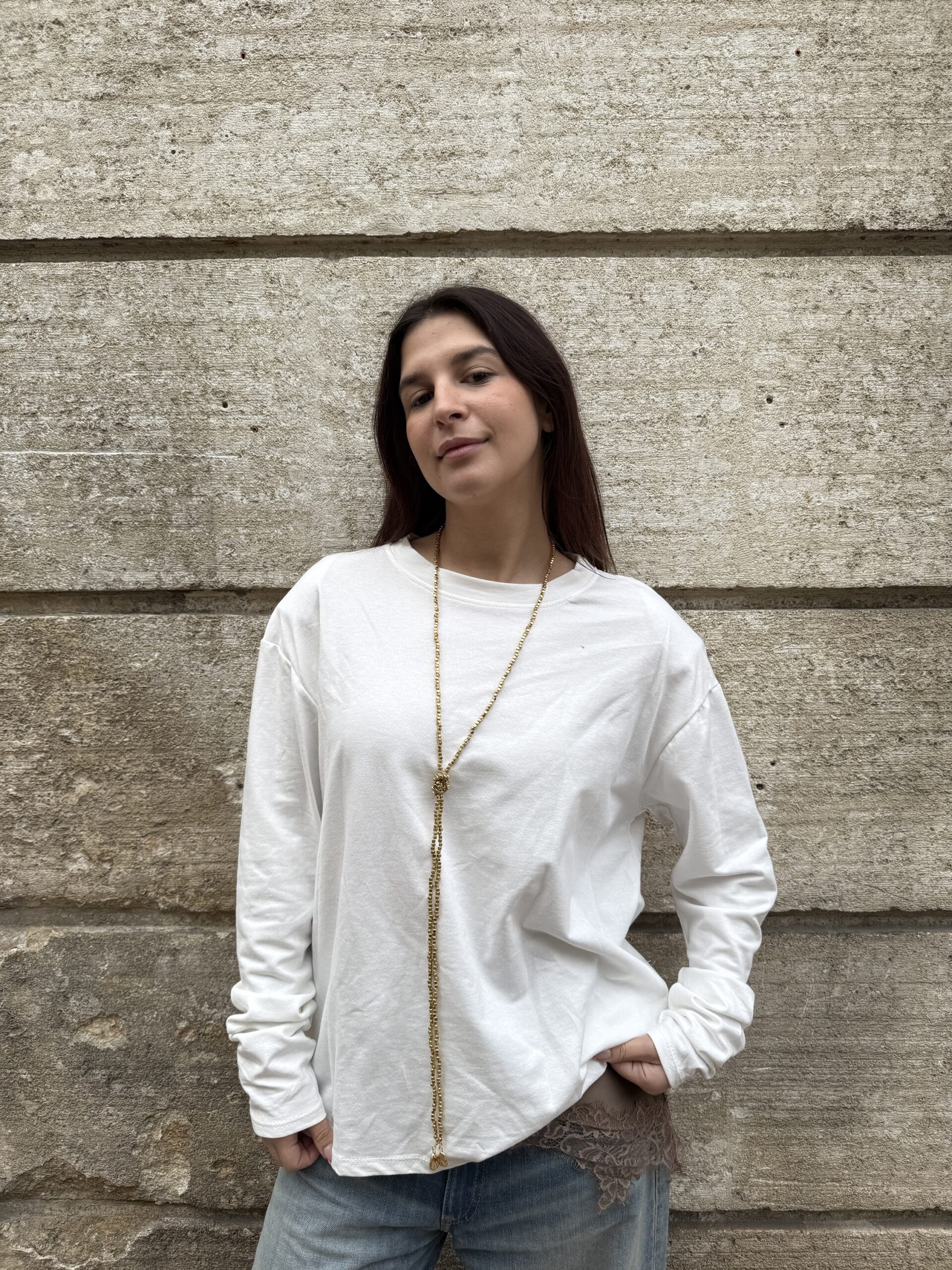 Apportez une touche moderne à vos tenues avec ce t-shirt manches longues à épaulettes. Confectionné en coton avec une touche d’élasthanne, il offre confort, douceur et une légère élasticité pour un porté agréable.